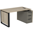 Стол с лючком на опорной угловой тумбе с ящиками (метабокс) и замком Венди, цвет светлый дуб + терра
