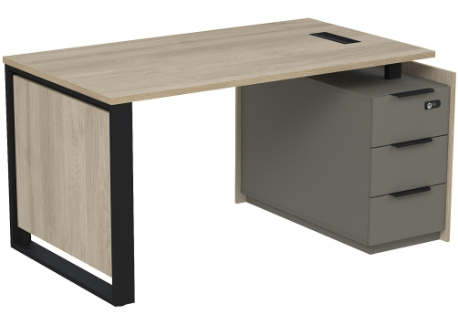 Стол с лючком на опорной угловой тумбе с ящиками (метабокс) и кодовым замком Венди, цвет светлый дуб + терра
