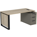 Стол с лючком на опорной угловой тумбе с ящиками (метабокс) и замком Венди, цвет светлый дуб + терра