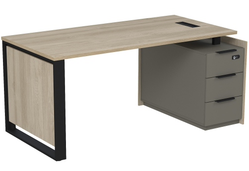 Стол с лючком на опорной угловой тумбе с ящиками (метабокс) и кодовым замком Венди, цвет светлый дуб + терра