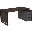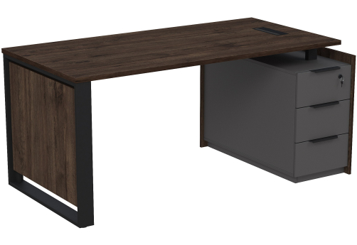 Стол с лючком на опорной угловой тумбе с ящиками (метабокс) и замком Венди, цвет брауни + графит