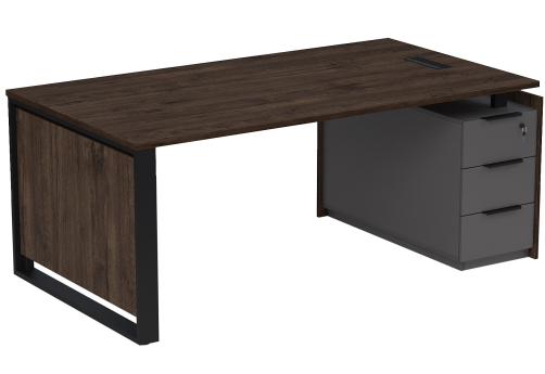 Стол с лючком на опорной угловой тумбе с ящиками (метабокс) и замком Венди, цвет брауни + графит