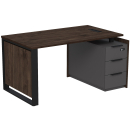 Стол с лючком на опорной угловой тумбе с ящиками (метабокс) и замком Венди, цвет брауни + графит