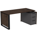 Стол с лючком на опорной угловой тумбе с ящиками (метабокс) и замком Венди, цвет брауни + графит