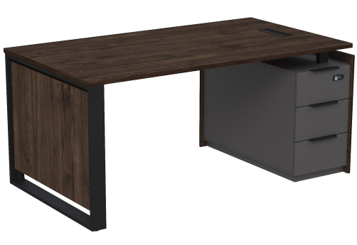 Стол с лючком на опорной угловой тумбе с ящиками (метабокс) и замком Венди, цвет брауни + графит