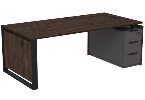 Стол с лючком на опорной угловой тумбе с ящиками (метабокс) и замком Венди, цвет брауни + графит