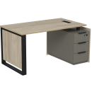Стол с лючком на опорной угловой тумбе с ящиками (метабокс) и замком Венди, цвет светлый дуб + терра