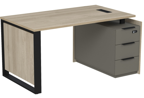 Стол с лючком на опорной угловой тумбе с ящиками (метабокс) и кодовым замком Венди, цвет светлый дуб + терра