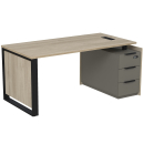 Стол на опорной угловой тумбе с ящиками (метабокс) и замком Венди, цвет светлый дуб + терра