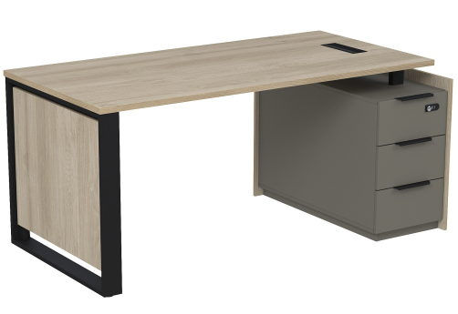 Стол с лючком на опорной угловой тумбе с ящиками (метабокс) и кодовым замком Венди, цвет светлый дуб + терра