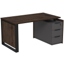 Стол с лючком на опорной угловой тумбе с ящиками (метабокс) и замком Венди, цвет брауни + графит