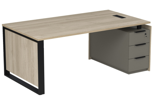 Стол с лючком на опорной угловой тумбе с ящиками (метабокс) и кодовым замком Венди, цвет светлый дуб + терра