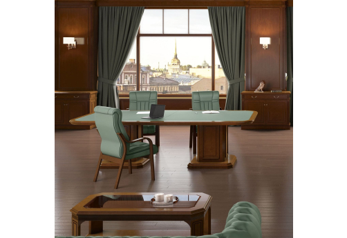 Кабинет выполнен в благородном классическом стиле, при этом в соответствии с современными дизайнерскими тенденциями. Это прекрасный пример мебели премиум-класса, предназначенной для статусных дорогих интерьеров. Мебель в кабинете смотрится фундаментально и строго, но вместе с тем очень элегантно.