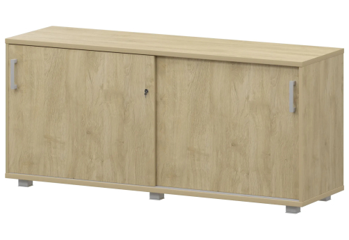 Классический дизайн, столы с «парящей» столешницей, с алюминиевыми проставками. Фурнитура - матовые ручки и квадратные опоры на тумбах и шкафах. Фактура ЛДСП сделана по технологии тиснения «шпон».