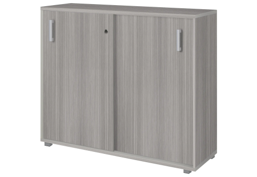 Классический дизайн, столы с «парящей» столешницей, с алюминиевыми проставками. Фурнитура - матовые ручки и квадратные опоры на тумбах и шкафах. Фактура ЛДСП сделана по технологии тиснения «шпон».