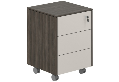 Тумба мобильная 3-х секционная Дания, цвет серый камень + брэнсон трюфель