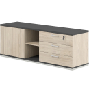 Стеллаж низкий узкий закрытый Сантана, цвет дуб сафари + серый