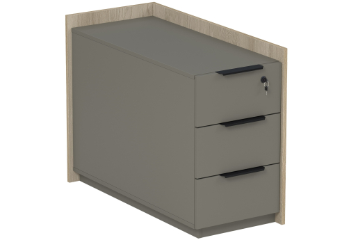 Тумба подкатная 3 ящика (метабокс) с замком Венди, цвет светлый дуб + терра