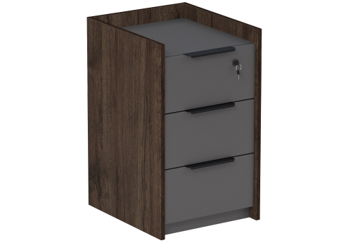 Тумба подкатная 3 ящика с замком Венди, цвет брауни + графит