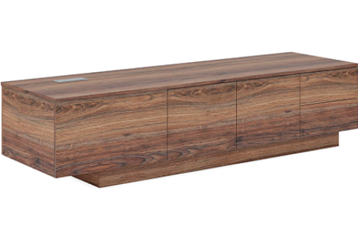 Мебель для кабинета руководителя премиум-класса - монолитные столешницы, геометрия линий, цвета материалов под натуральное дерево, отделка качественной экокожей, шкаф-тотем со светодиодной подсветкой, встроенные кабель-каналы, механизм push-to-open.