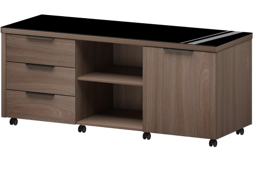 Амстердам - мебель в кабинет руководителя, выполненная в современном дизайне. Особенность серии: декор из полированного стекла лакобель, толстые столешницы, сборные столы для заседаний и конференций, актуальные цвета ЛДСП.