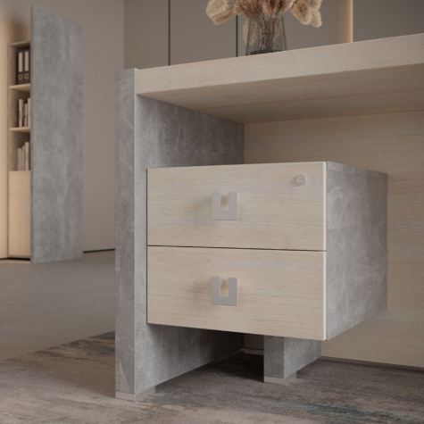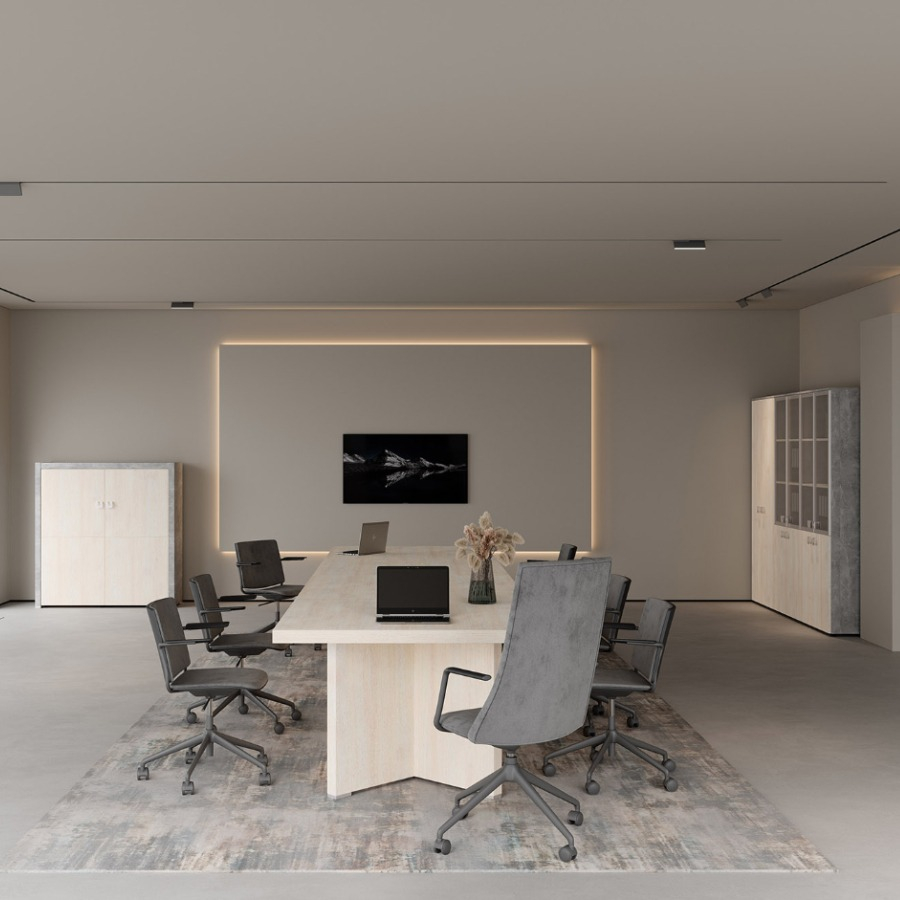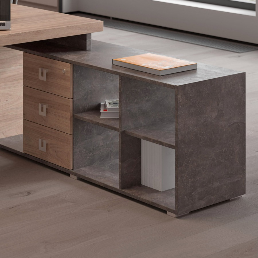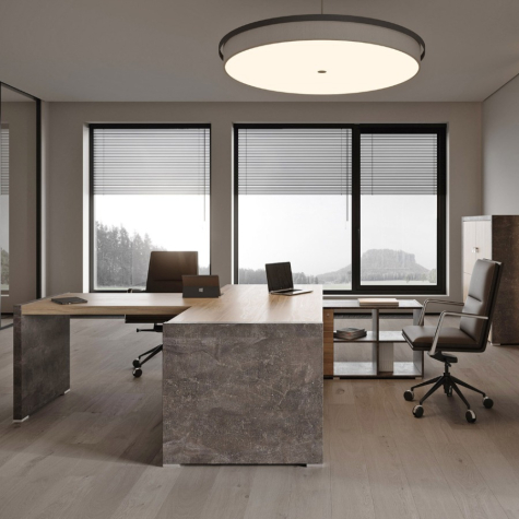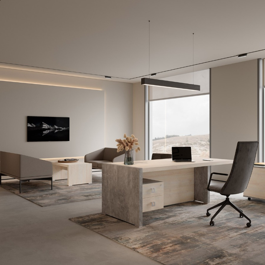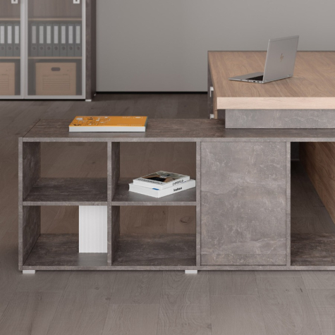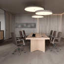 Мебель для кабинета руководителя из коллекции "Челси" выполнена из ЛДСП, которая зарекомендовала себя как надежный материал. Рабочие столы выглядят стильно и добротно, за счет увеличенной толщины столешниц. Столы с опорными тумбами, возможность объединения шкафов под единый топ, декоративные боковины, стеллажи с подсветкой, тумбы, креденции и мобильные подставки - все для красоты и удобства в офисе.