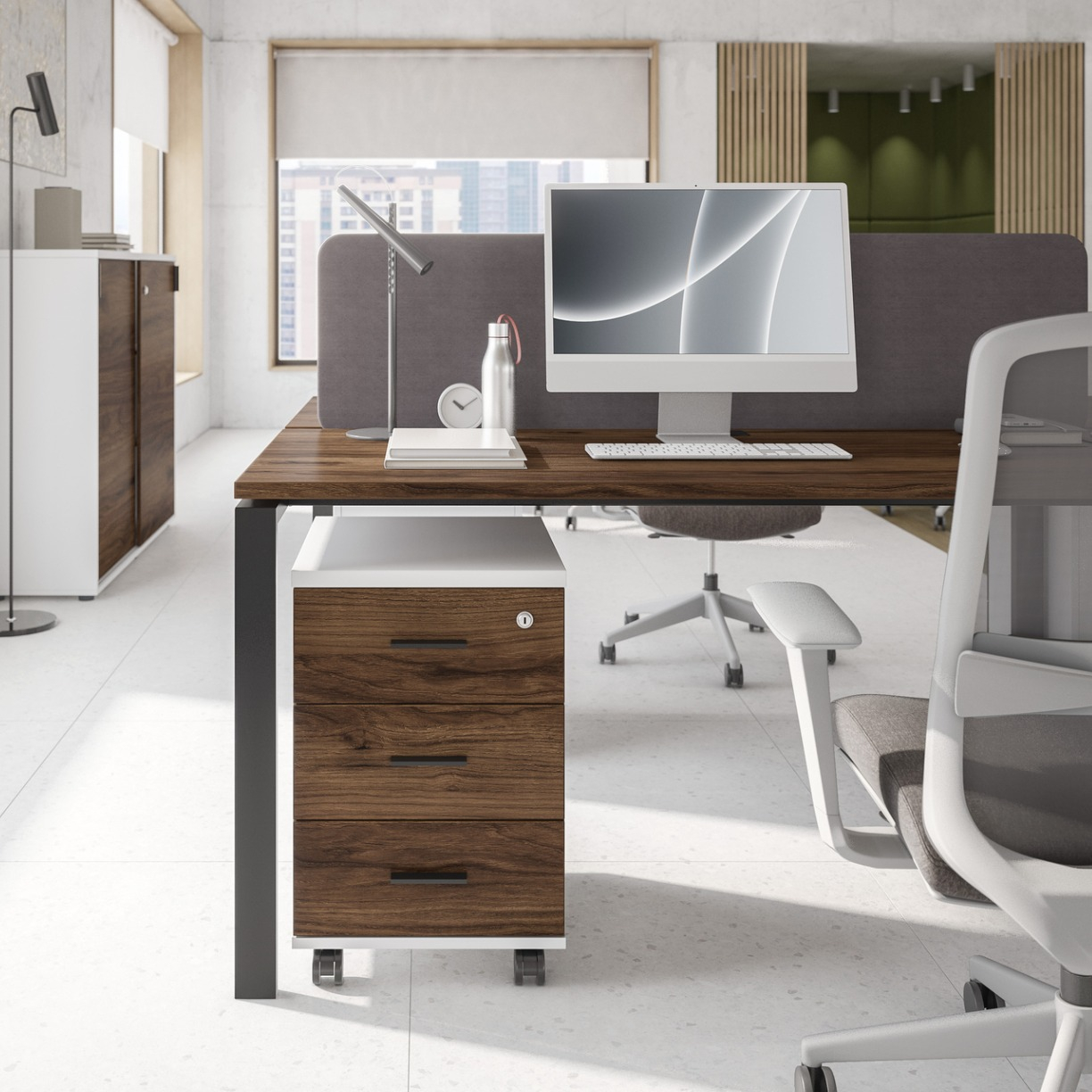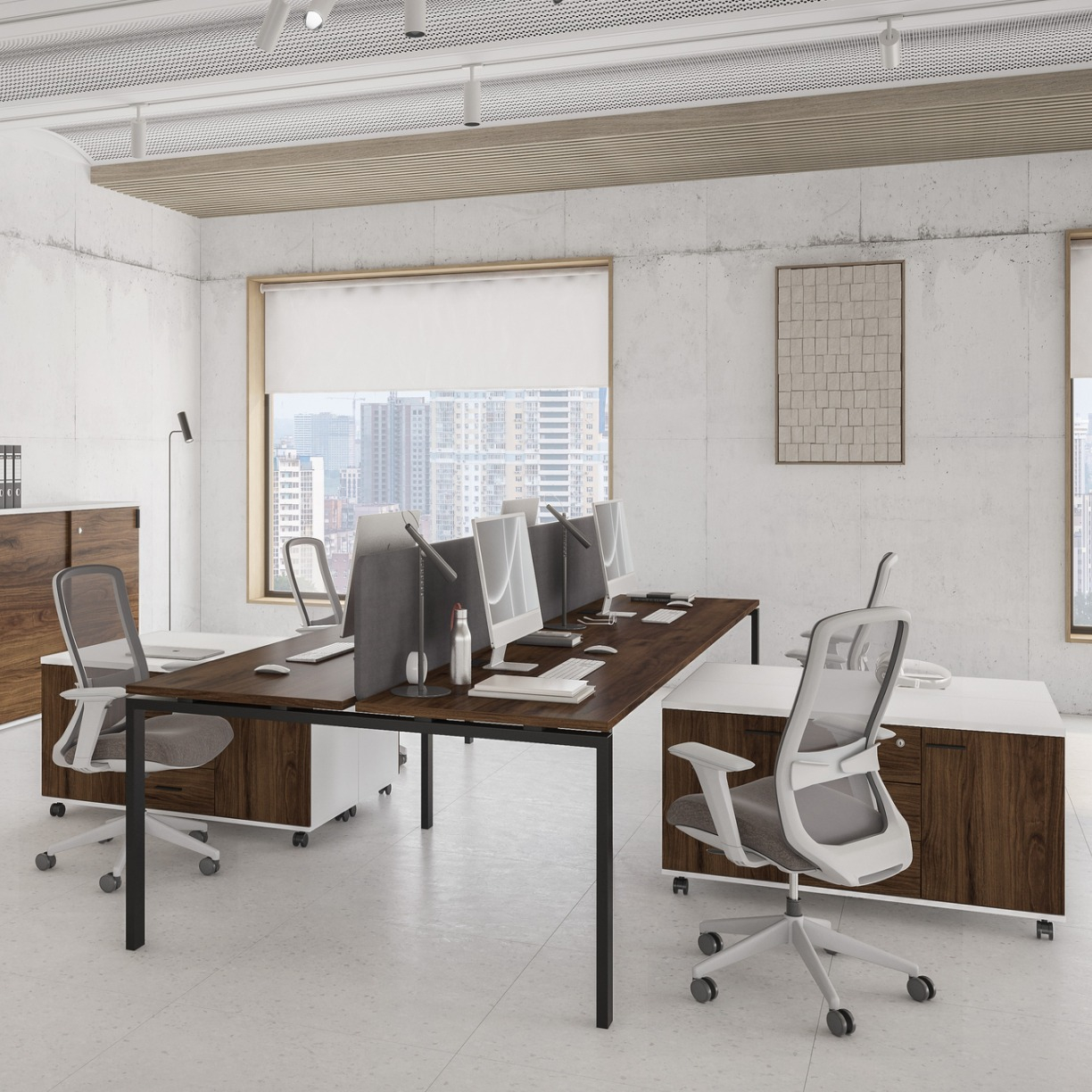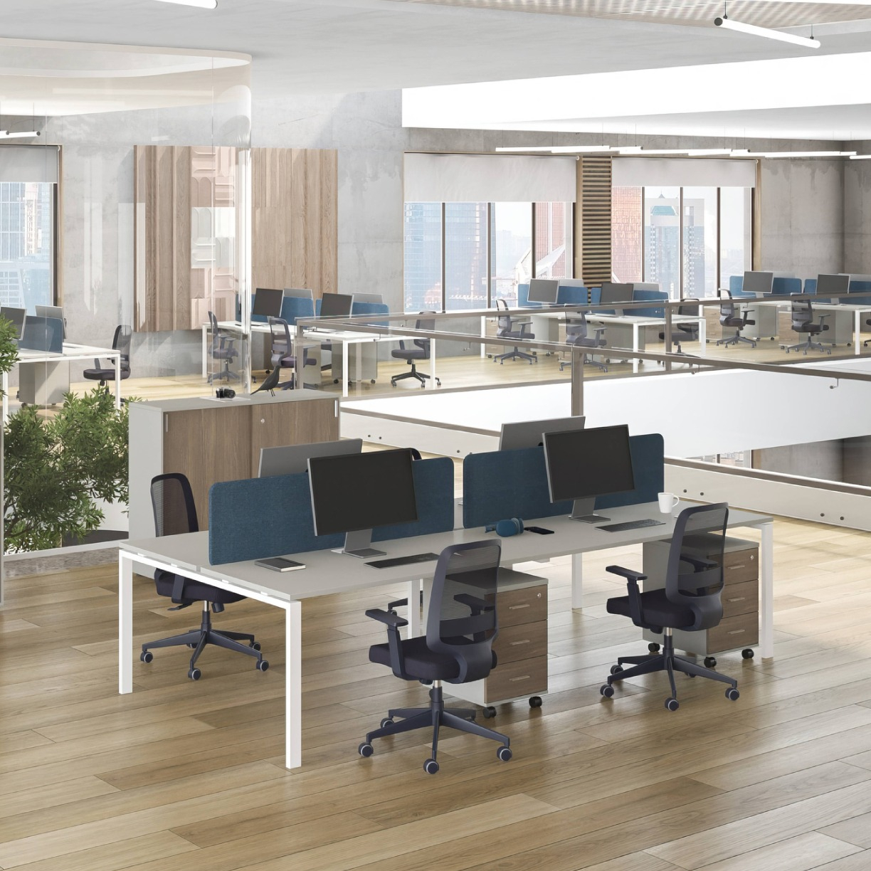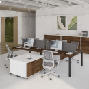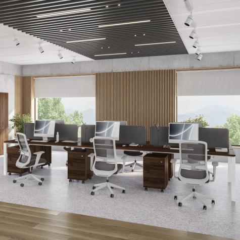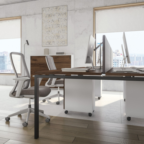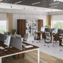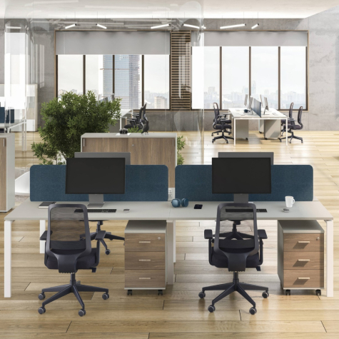 Серия мебели Индиго Сет сочетает в себе непревзойденное качество, актуальную цветовую гамму, надежную фурнитуру и офисный стиль. В качестве основного материала выступает ЛДСП. П-образные опоры из металла могут быть в двух цветах: белый, антрацит. Цветовая гамма подобрана идеально, цвета отлично сочетаются между собой и вписываются в офисный стиль. Основа этой коллекции - офисные столы, а также столы для переговоров, укомплектованные заглушками кабель-каналов.