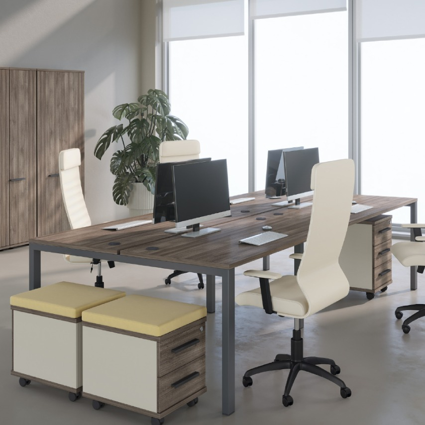 Мебель для персонала Лиани - это удачное сочетание современного стиля и функциональности. Столы изготовлены с использованием прочного ЛДСП и элегантных металлоопор, создающих прочную и эстетически привлекательную базу. Толщина столешницы 25 мм придает им ощущение прочности и надежности, а регулируемые опоры обеспечивают максимальный комфорт в работе.