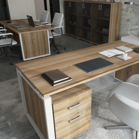 Стол руководителя Сантана Люкс, цвет лиственница + белый