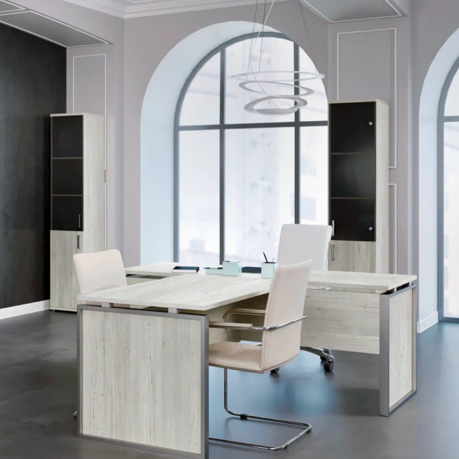 Стол руководителя Сантана Люкс, цвет сосна винтер + металлик