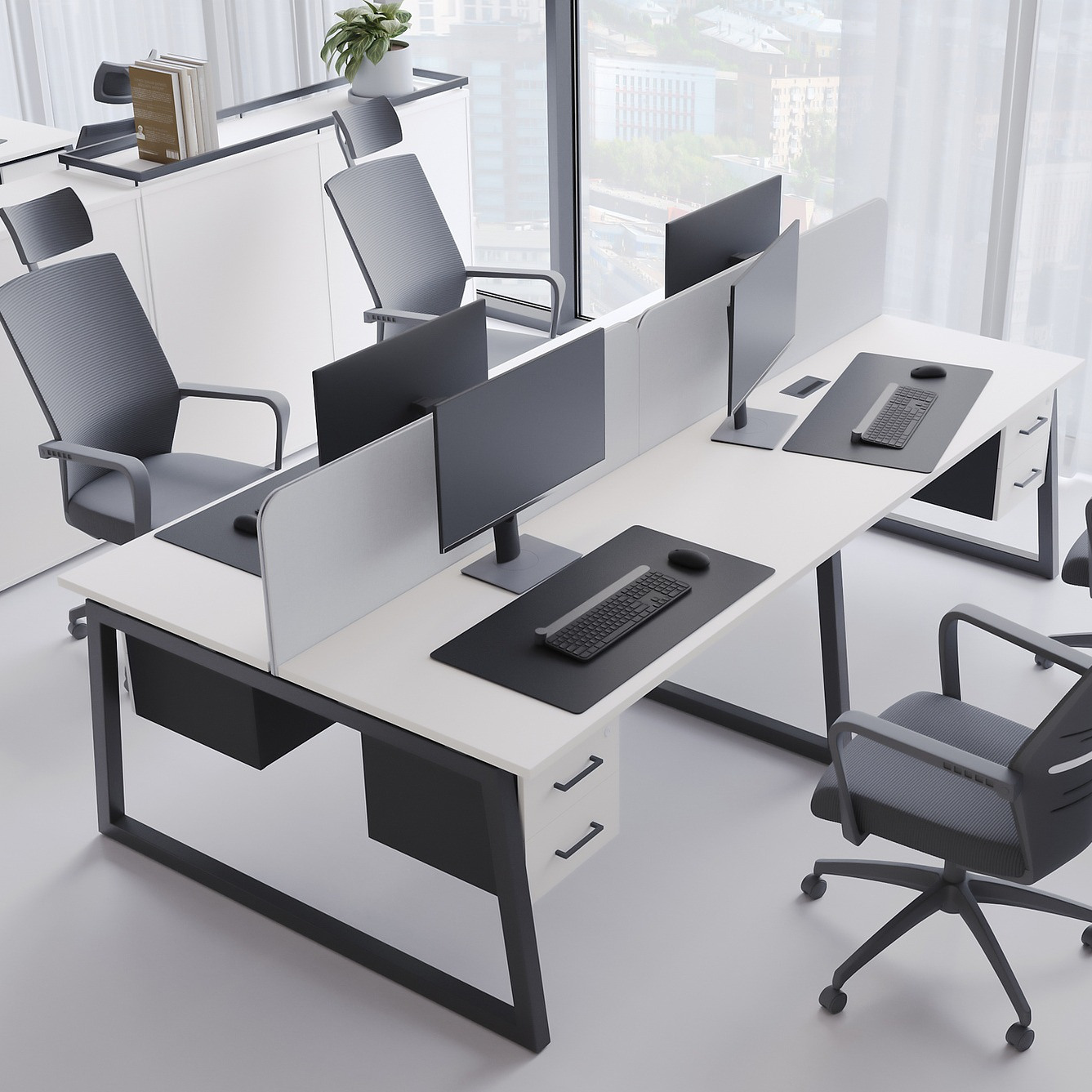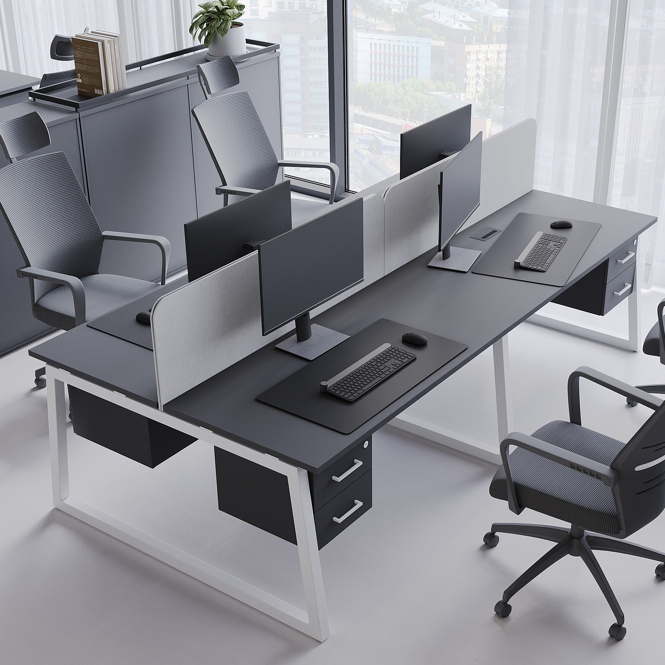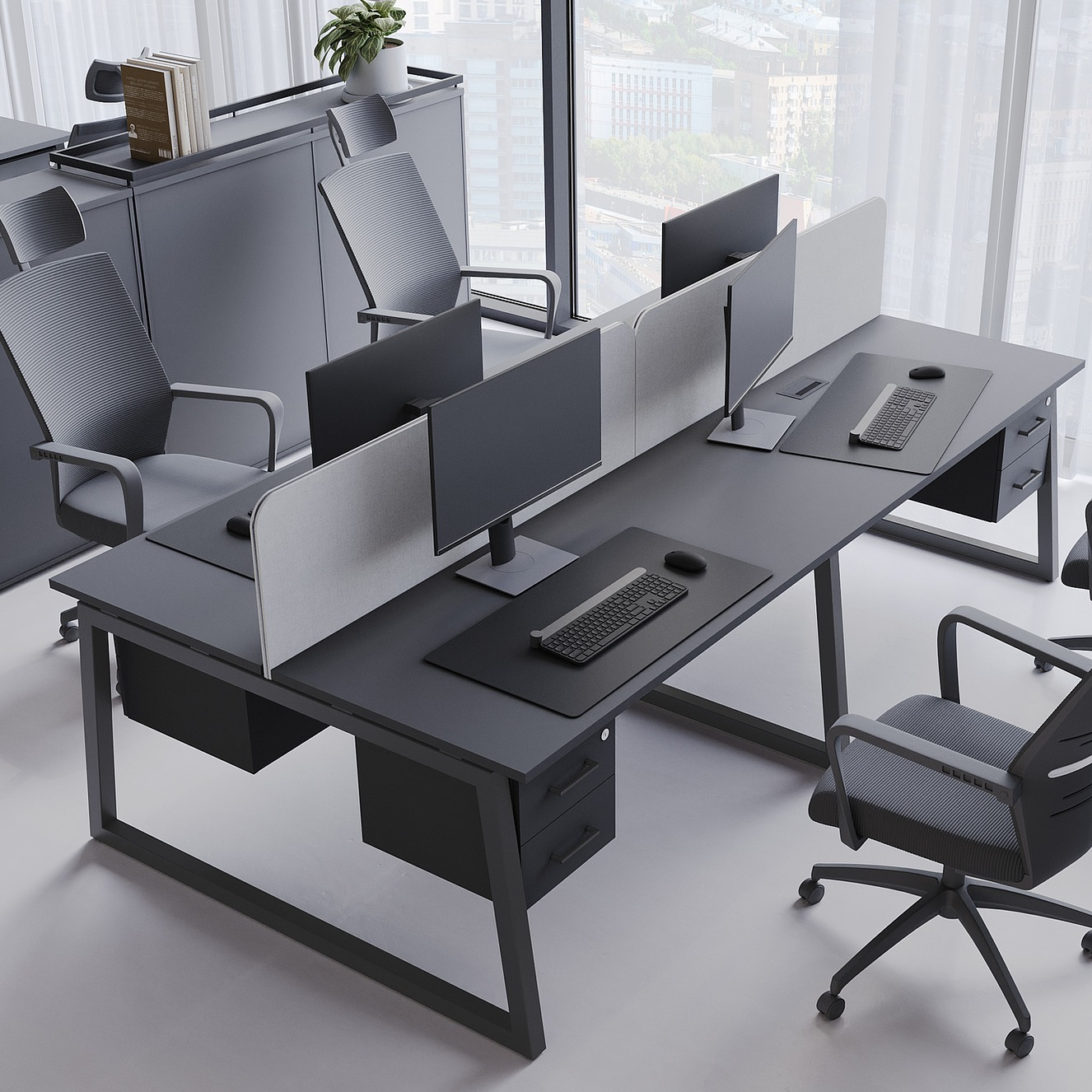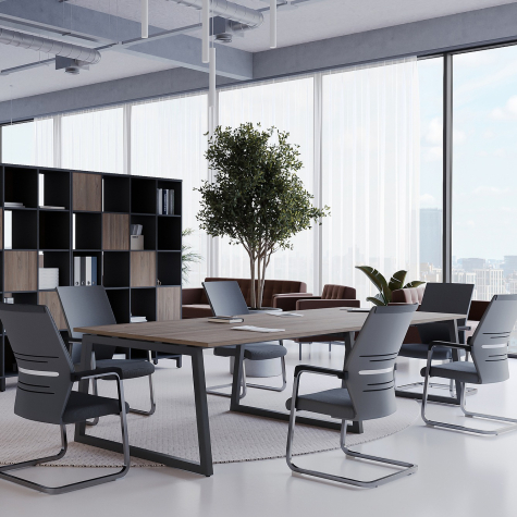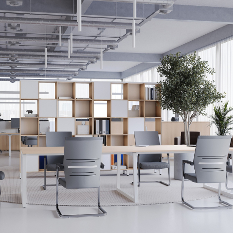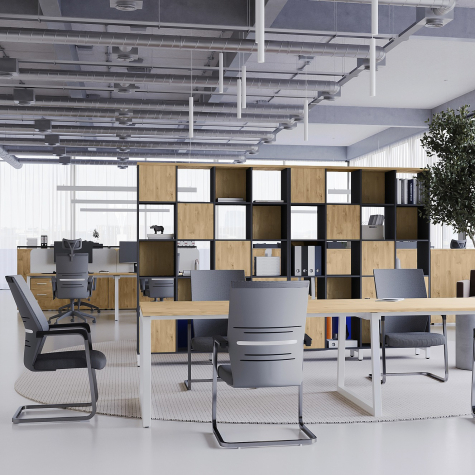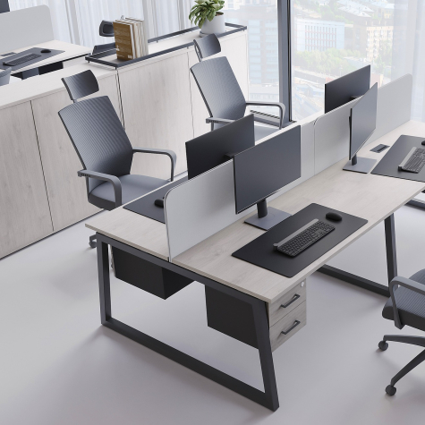 Коллекция мебели для персонала "Сити Макси 40-Т1" сочетает в себе доступные цены, современный дизайн и качественные материалы. Столешницы из ЛДСП толщиной 25 мм вместе с металлическими опорами в форме трапеции лаконично вписываются в деловой интерьер. С ними отлично сочетается и другая мебель из этой коллекции: стеллажи, тумбы, шкафы. Цветовая гамма всей серии тщательно проработана, она состоит из различных цветов, которые подойдут под любой стиль офисного интерьера.