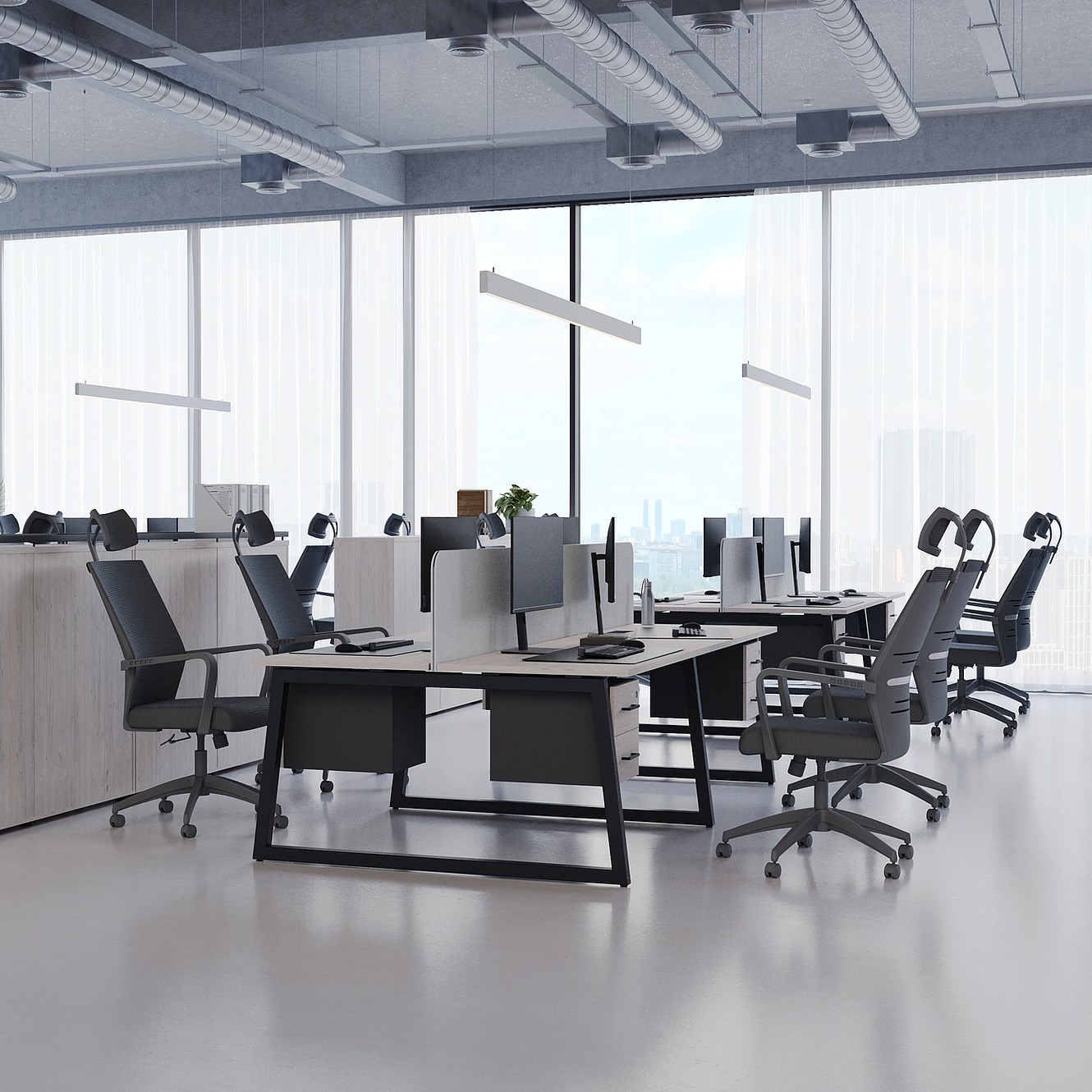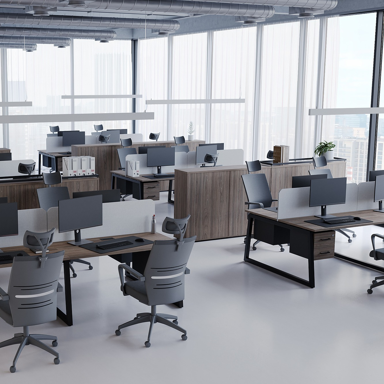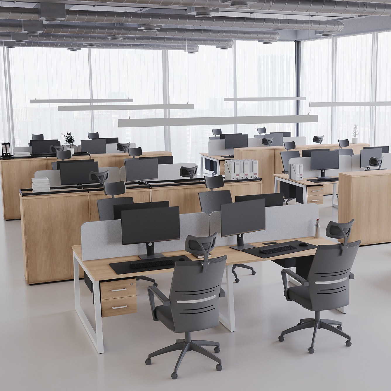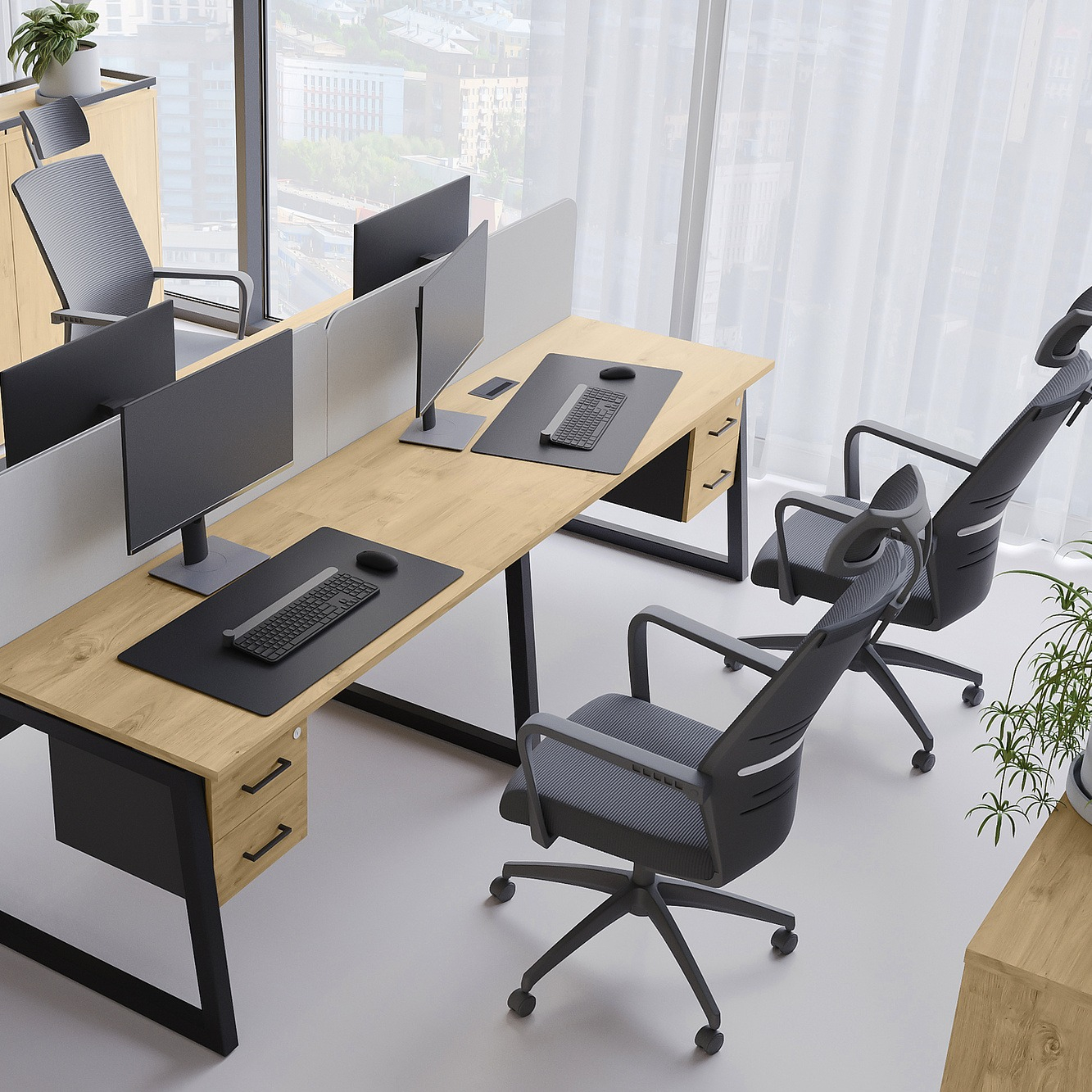 Коллекция мебели для персонала "Сити Макси 40-Т1" сочетает в себе доступные цены, современный дизайн и качественные материалы. Столешницы из ЛДСП толщиной 25 мм вместе с металлическими опорами в форме трапеции лаконично вписываются в деловой интерьер. С ними отлично сочетается и другая мебель из этой коллекции: стеллажи, тумбы, шкафы. Цветовая гамма всей серии тщательно проработана, она состоит из различных цветов, которые подойдут под любой стиль офисного интерьера.