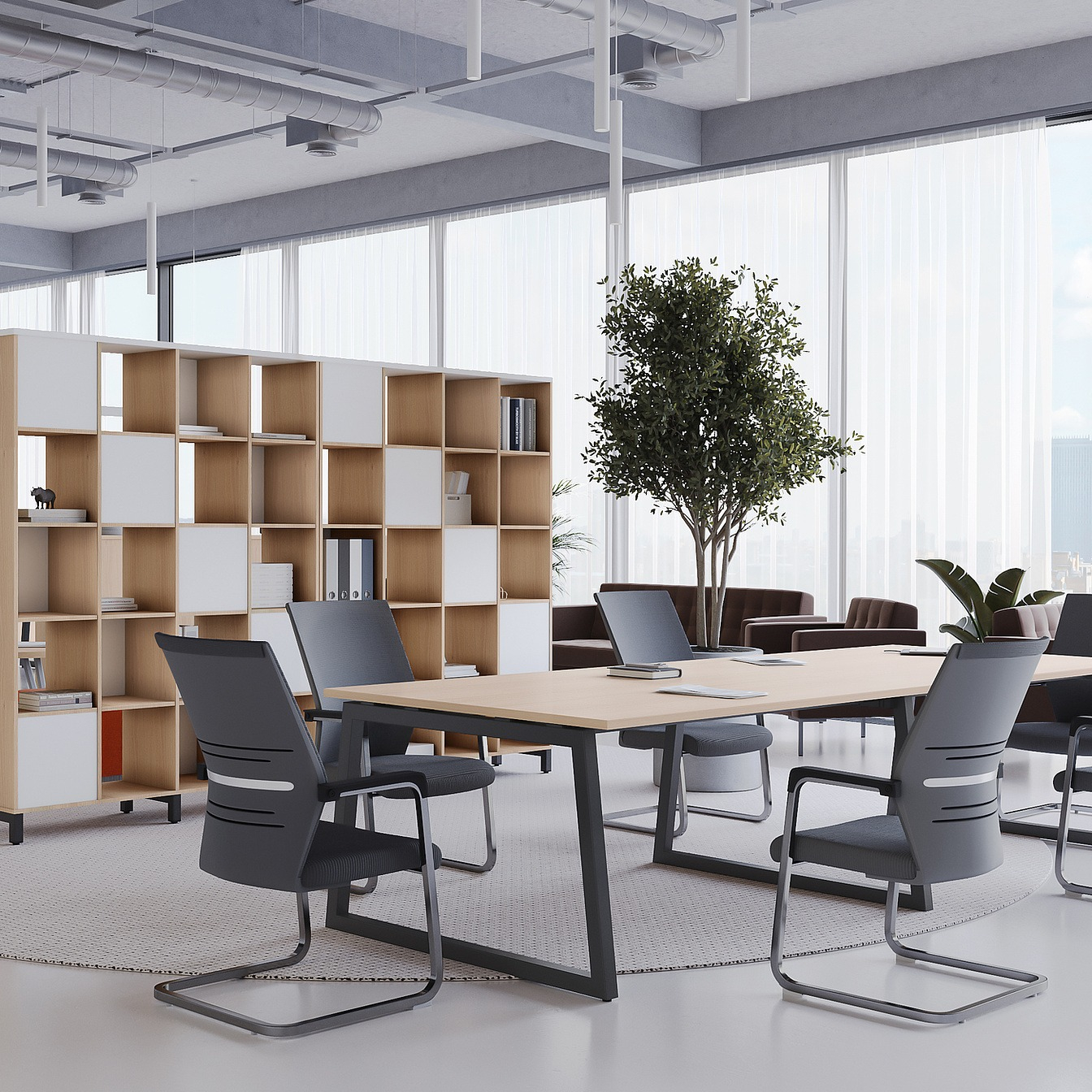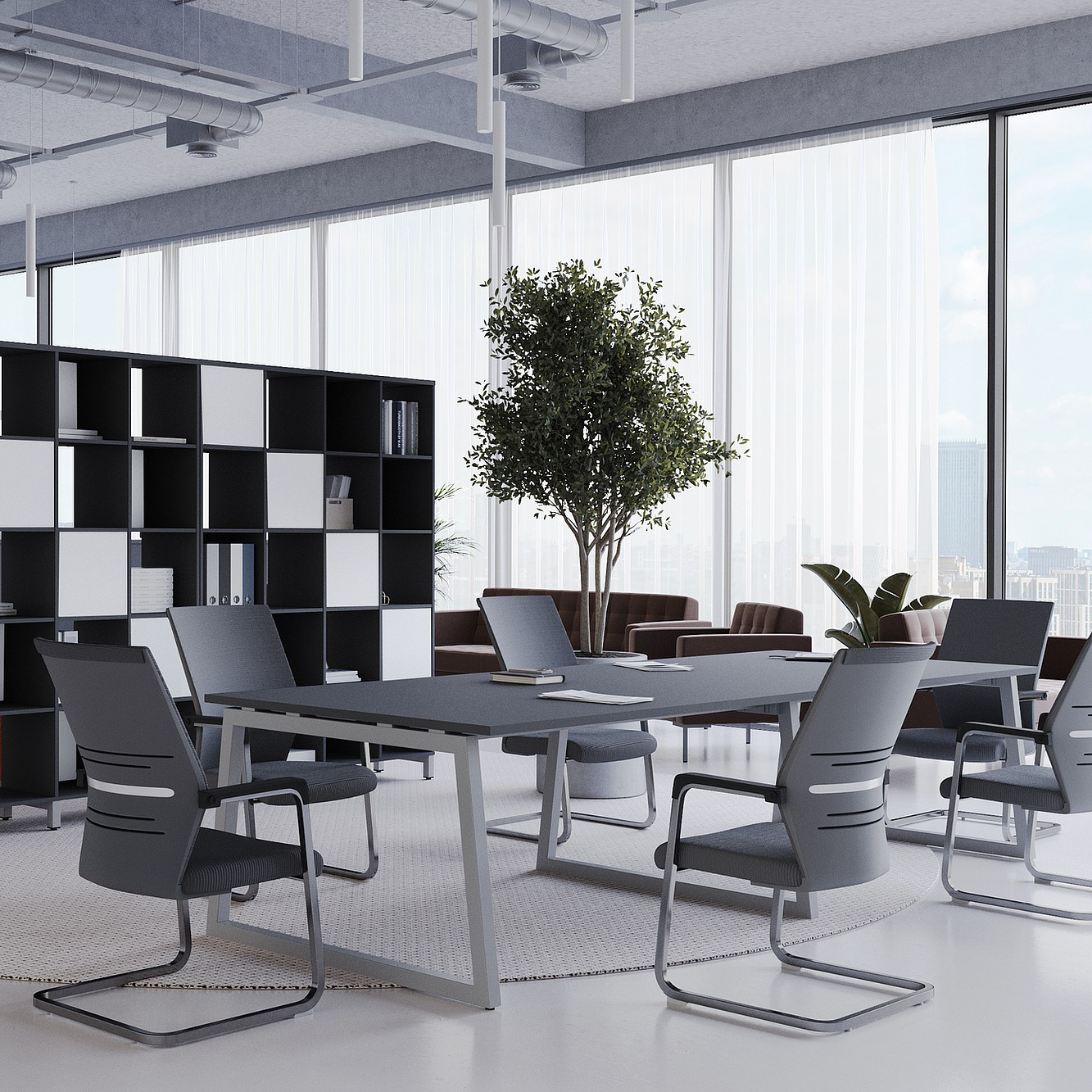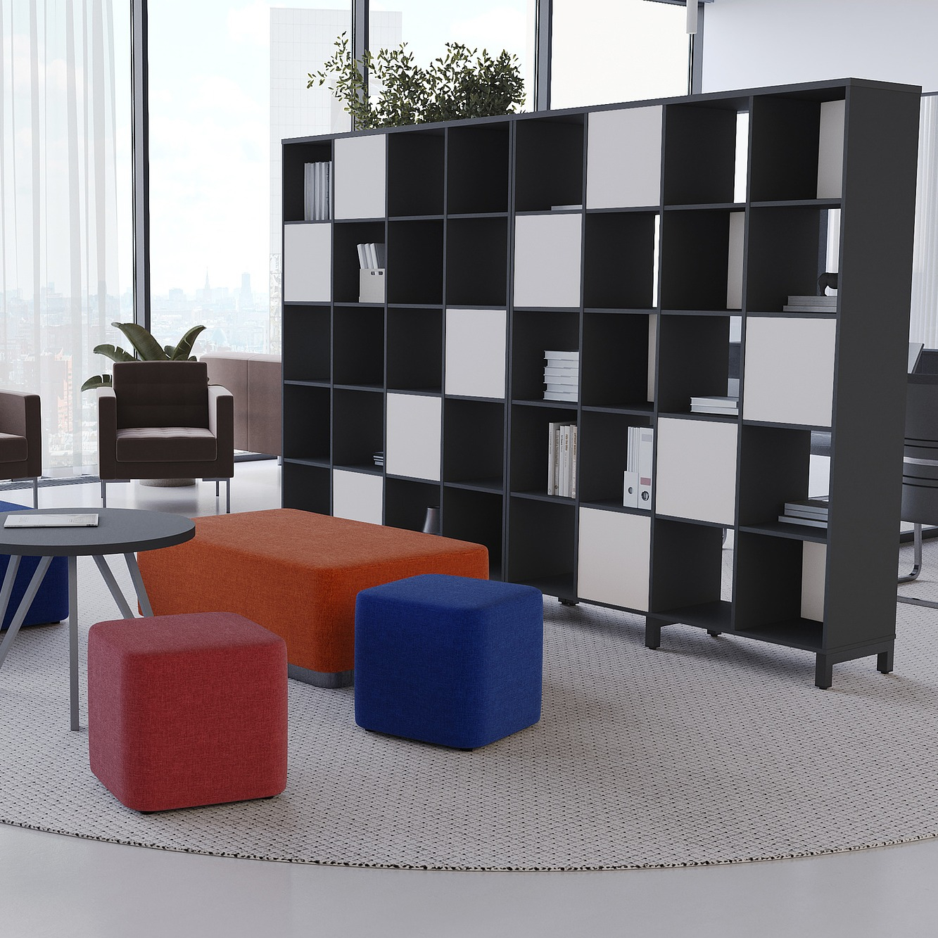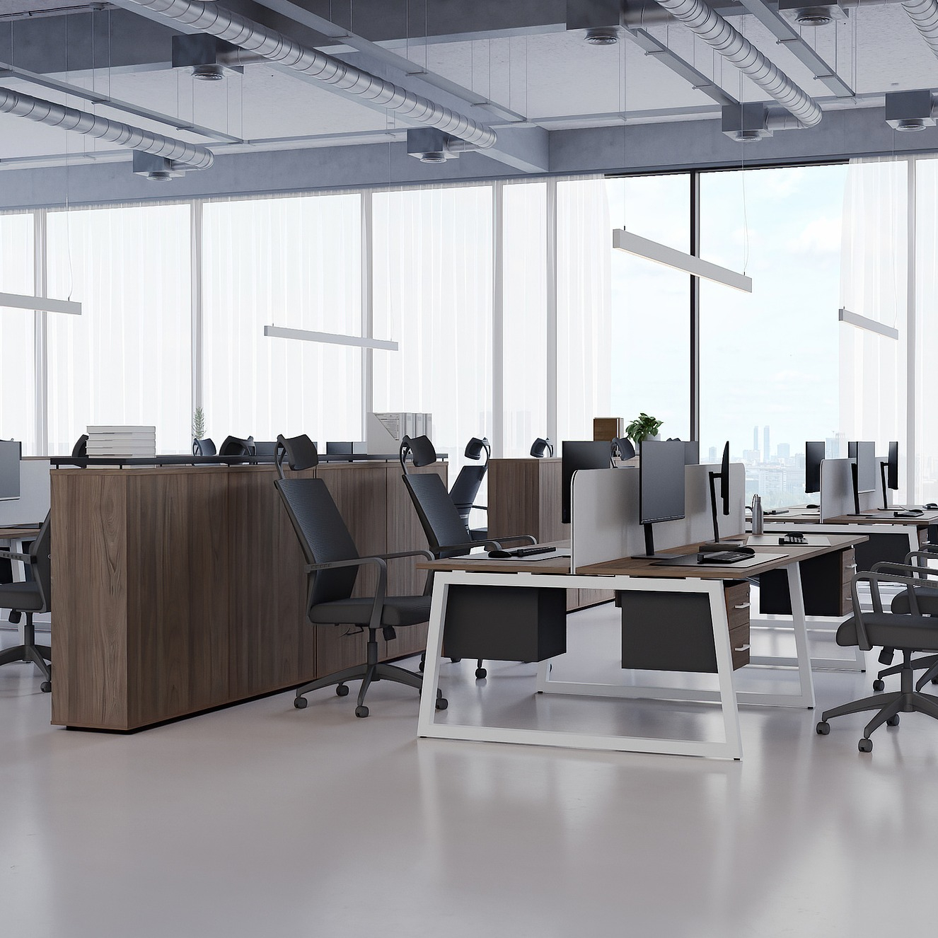 Коллекция мебели для персонала "Сити Макси 40-Т1" сочетает в себе доступные цены, современный дизайн и качественные материалы. Столешницы из ЛДСП толщиной 25 мм вместе с металлическими опорами в форме трапеции лаконично вписываются в деловой интерьер. С ними отлично сочетается и другая мебель из этой коллекции: стеллажи, тумбы, шкафы. Цветовая гамма всей серии тщательно проработана, она состоит из различных цветов, которые подойдут под любой стиль офисного интерьера.