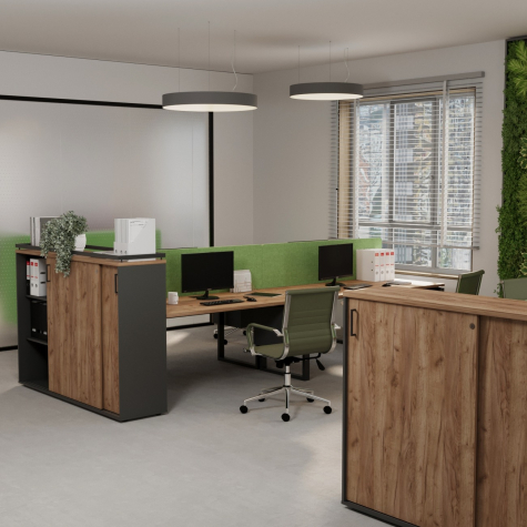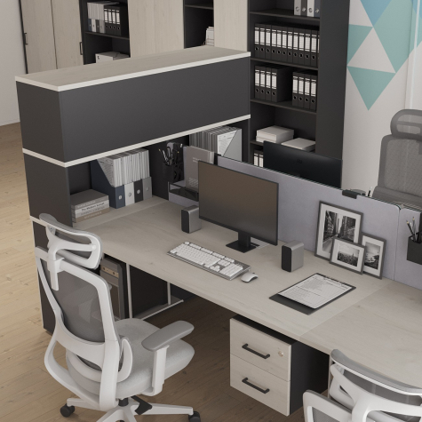 Коллекция корпусной мебели "Сити Офис О-60" сочетает в себе качество, стиль и удобство. Металлические О-образные опоры придают столам особый вид и строгость. На выбор покупателя мебель представлена в разной цветовой гамме, также можно выбрать цвет металлокаркаса. Помимо столов в серии: шкафы, стеллажи, тумбы и брифинг-приставки, мебель для переговорных комнат, настольные экраны. Основной материал ЛДСП - отличается длительным сроком эксплуатации и сочетается с любыми другими материалами.