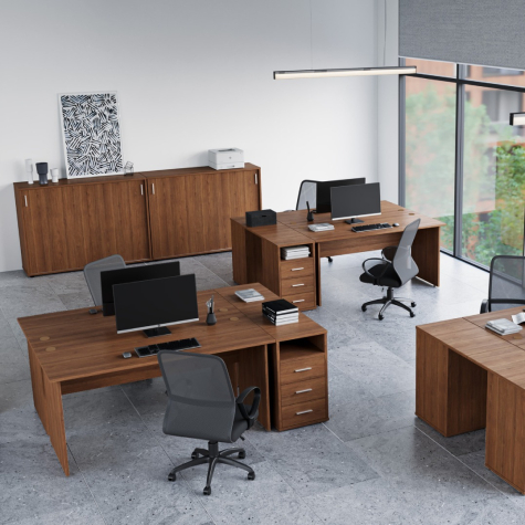 Замечательный вариант офисного стола. Нас он сразу устроил. Смотрится весьма симпатично, цвет у него хороший. Плюс цена адекватная. Заказали 10 штук. Доставили их точно в оговоренный день и время (перед доставкой позвонили за час). Грузчики были адекватные и опрятные. Сборщики выполнили свою свою работу быстро, плюс расставили столы по нужным местам.