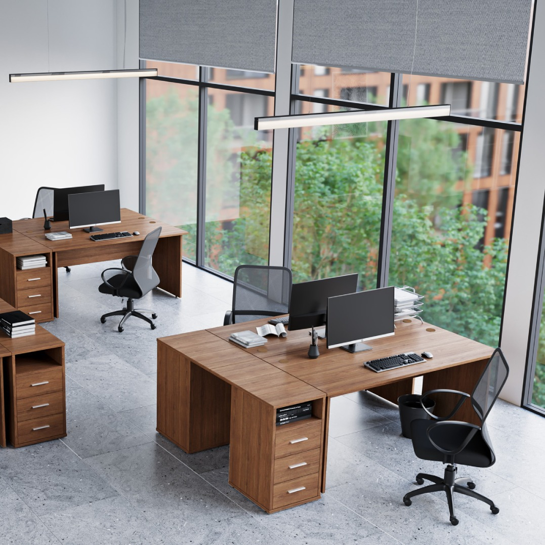 Переехали в новый офис из-за расширения, ну и понадобилось докупить кое-какую мебель, в том числе и столы для персонала. Выбрали вот такую модель. Стол очень хороший: удобный, вместительный, собран добротно и материалы высокого качества. Конструкция у него простая и в то же время очень прочная за счет ребра жесткости, поэтому стоят они очень устойчиво на полу и не шатаются.