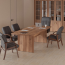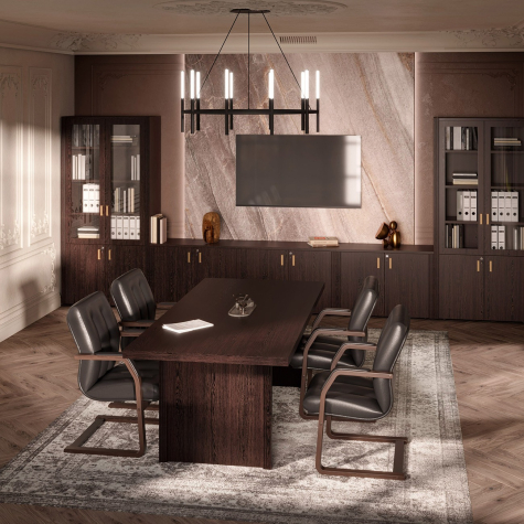 Мебель для конференц-залов и переговорных комнат должна отличаться удобством, качеством и непревзойденным стилем. Всего этого можно достичь при покупке мебели из серии "Визави Конференц". Эти столы нельзя отнести к бюджетным, это модель премиум-класса, для производства которых дизайнеры применяют натуральные дорогостоящие материалы. Столешницы выглядят дорого, могут подчеркнуть вкус и стиль руководителя офиса, а поэтому переговоры направлены на положительный исход. Отделка МДФ и вставки из искусственной кожи стильно и лаконично "обогащают" коллекцию.